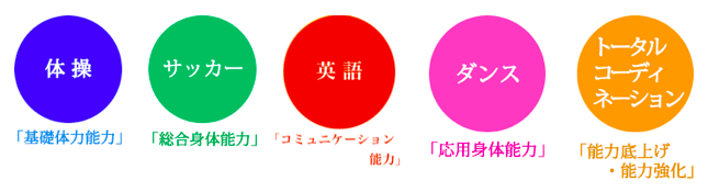 月4回のゴールデンエイジプログラムの授業(3回の種目別スポーツ授業+コーディネーション授業)と月3〜4回の英語の授業